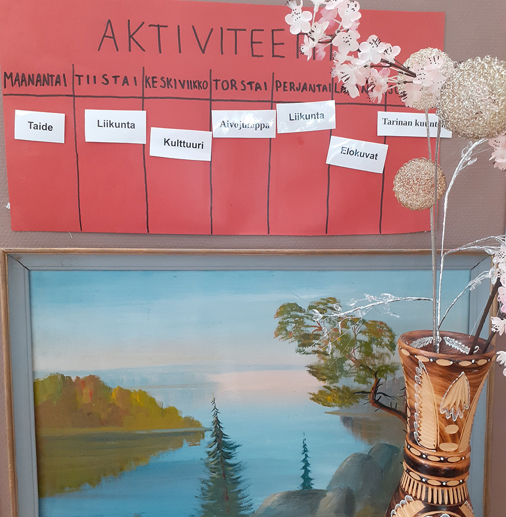 Tavoitteenamme on turvallisen arjen, ohjauksen ja tuen kautta auttaa ihmistä selviytymään jokapäiväisistä arkisista askareista. Panostamme mahdollisimman voimauttavaan ja kuntouttavaan työhön. Osallistamisen ja kannustamisen avulla pyrimme löytämään jokaiselle asukkallemme yksilöllisen tuen. Asukkaat saavat osallistua erilasiin arjen puuhiin omien voimavarojensa mukaan, esimerkiksi erilaisiin kotitöihin ja pihatöihin.