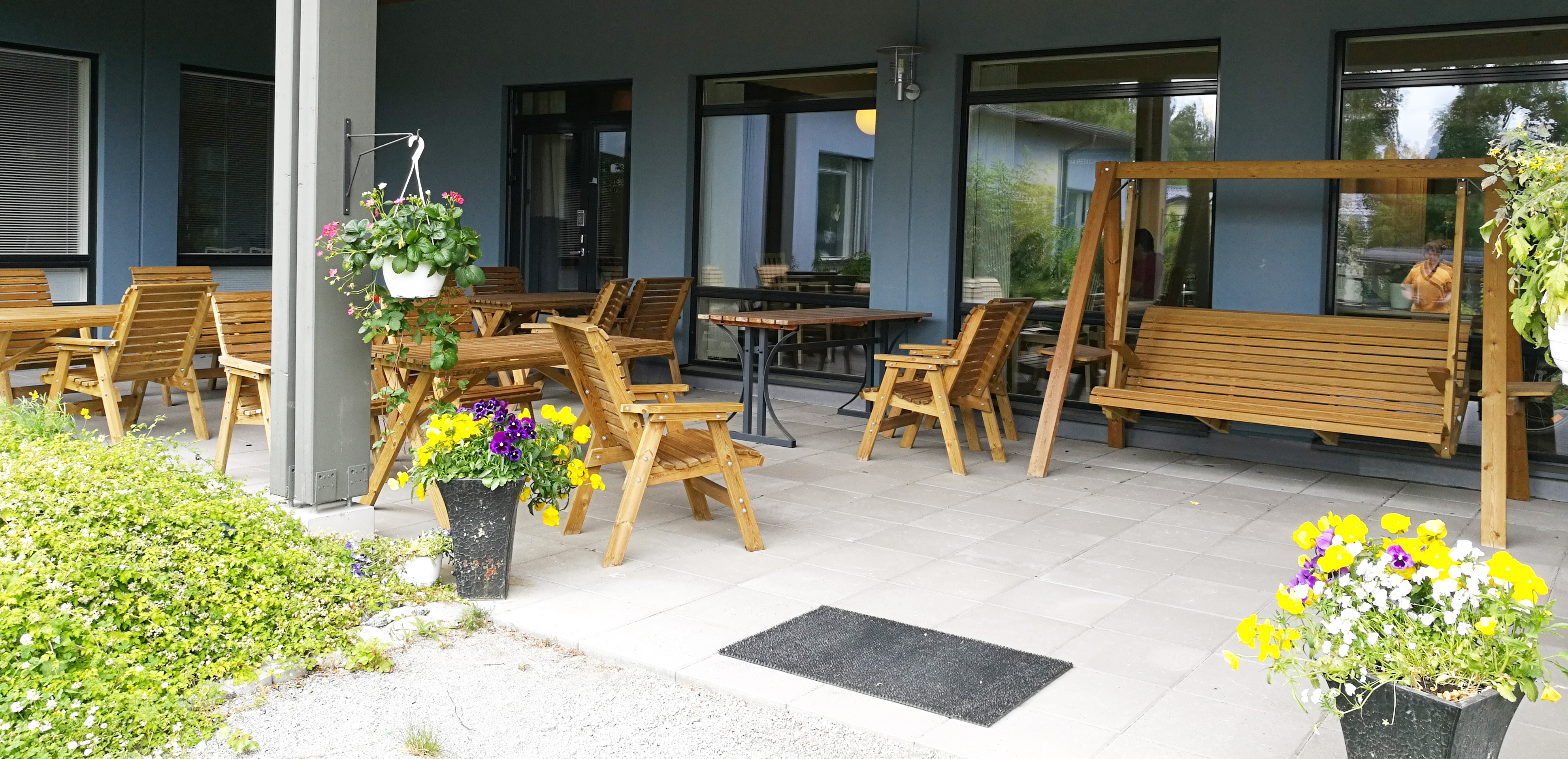 Kodin käytävillä on useita oleskeluryhmiä, joissa asukkaat voivat levähtää sekä viettää yhteistä aikaa kodin muiden asukkaiden kanssa. Keväästä syksyyn käytössä ovat myös kodin lasitetut parvekkeet istuinryhmineen. Sisäpihalla on myös katettu terassi vaikka leppoisia iltapäiväkahveja varten.