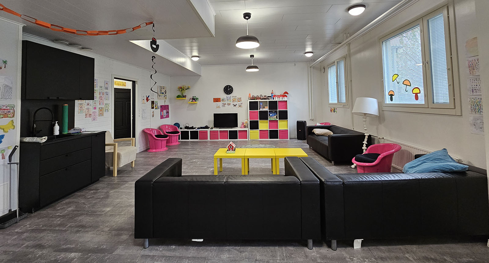 Tilavat tilamme ovat saneerattu ja sisustettu tarpeen mukaisesti ja ovat esteettömät. Tilat on suunniteltu helppokulkuisiksi, sillä liikkuminen ja omatoimisuuden tukeminen ja edistäminen, turvallisuus ja viihtyisyys kuuluvat toimintamme perusajatukseen. Tiloissamme on huomioitu eri ryhmien erilaiset tarpeet ja toiminnat. Ympäristö on rauhallinen ja luonto on lähellä, jossa käydäänkin ohjaajien kanssa ulkoilemassa usein.